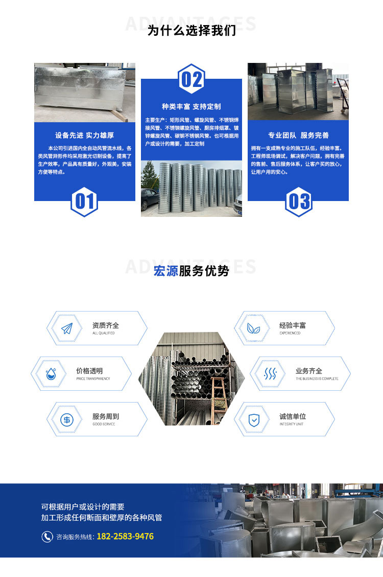 安徽宏源通风设备有限公司是家生产安装为体工程公司。主营螺旋风管、通风管道、厨房排烟、不锈钢烟罩、风机安装、方形(共板法兰)风管。钣金件等产品。多年来承接众多家企事业单位、酒楼及大型工厂的通风降温、工业除尘排烟、喷油净化等工程,积累丰富的实践经验,储备大批高素质的人才队伍,历年来秉承着“以人为本,诚信经营”的企业精神和完善的售后服务体系,为广大客户提供比较满意的通风方案,获得致的好评。我们直都在努力,直到客户满意为止。您的满意,是我们的追求。公司坚持以“优良的产品、低廉的价格、真城的服务”为宗旨,服务社会、服务用户,我们真诚希望与海内外各界朋友携手共进。